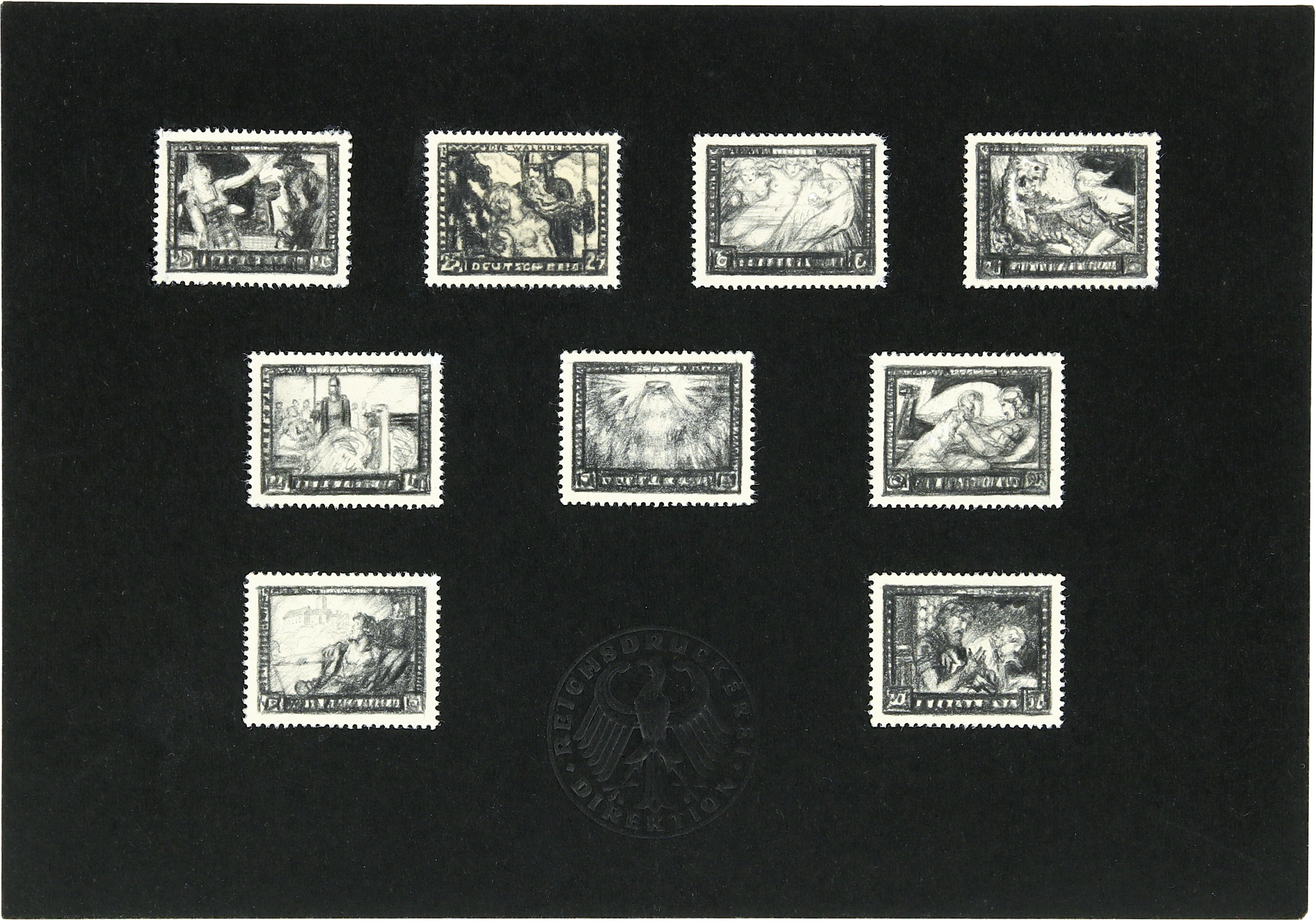 Foto: Einmaliger Vorlagekarton mit Entwürfen zur Richard-Wagner-Serie von 1933 (10 000-12 000 Euro).